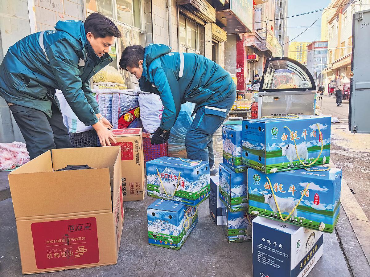 時下已近冬至,位于河西走廊腹地的肅南裕固族自治縣正是滴水成冰的時節(jié)。但與之形成鮮明對比的是,這里牛羊肉消費卻迎來熱火朝天的旺季?!跋衽Q蛉膺@樣的生鮮食品,快遞時效和肉的品質同樣重要?,F(xiàn)在郵政速度很快,我們發(fā)貨沒有后顧之憂!”12月5日,肅南縣皇城鎮(zhèn)村民馬有本在村級寄遞站,一邊打包外寄的牛羊肉,一邊喜滋滋地說。