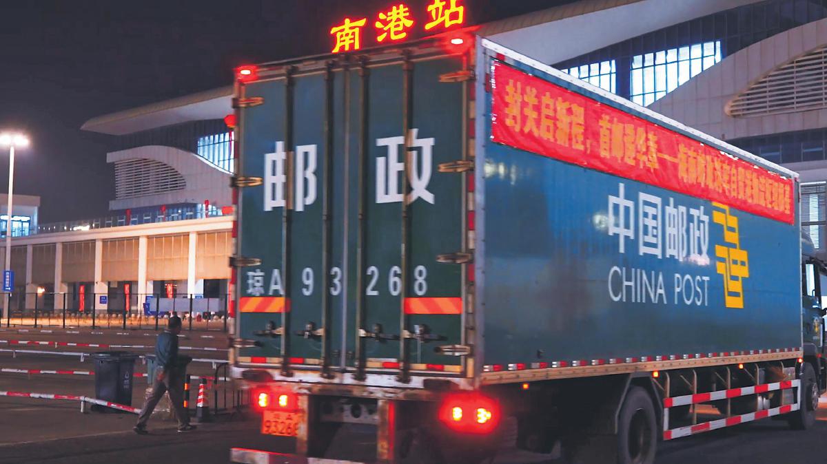 12月18日零時,海南自由貿(mào)易港全島封關(guān)運作全面啟動。海南郵政作為物流服務(wù)體系的重要一環(huán),全力保障封關(guān)運作后郵件出島順利暢通。零時28分,海南郵政首趟出島的郵車滿載免稅品郵件,通過“二線口岸”(貨運)集中查驗場,駛?cè)肽细鄞a頭,隨后登上封關(guān)后首趟出島輪渡“粵海鐵3號”。1時15分,輪渡順利離港出發(fā),標(biāo)志著海南自貿(mào)港封關(guān)運作后,海南郵政物流通道順利貫通。