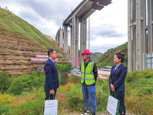 郵儲(chǔ)銀行平?jīng)鍪蟹中泄ぷ魅藛T在高速公路施工現(xiàn)場(chǎng)走訪。