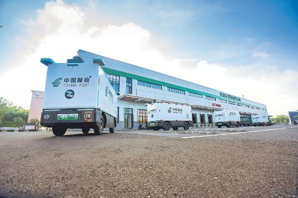 1月19日,在河南省淅川縣寄遞物流共配中心,郵政無人車滿載郵件整裝待發(fā)?! 鮿⒘P(yáng) 攝