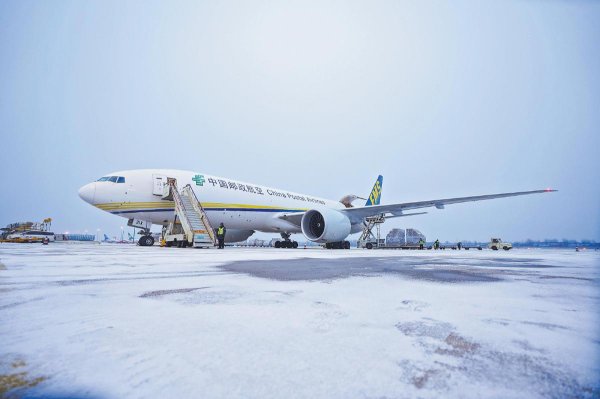 1月19日上午,河南鄭州新鄭國際機(jī)場的飄雪裹著寒意,一架鄭州至盧森堡的郵航全貨機(jī)??吭跈C(jī)坪。郵航地勤人員穿梭其間,將一板板郵貨穩(wěn)穩(wěn)裝入機(jī)艙——這架身披郵政標(biāo)識(shí)的飛機(jī)即將帶著風(fēng)雪里的牽掛與年貨,沿著國際郵路奔赴遠(yuǎn)方,成為新春里跨越山海的溫暖聯(lián)結(jié)?! 趵钇健z