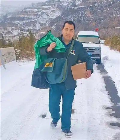“今天下雪,車(chē)最多開(kāi)到半山腰,后面的路還得靠腿走,所以得早點(diǎn)出發(fā)?!壁w元瑞說(shuō)著發(fā)動(dòng)了車(chē)。作為鎮(zhèn)里的郵遞員,趙元瑞幾乎天天在溝壑縱橫、山路起伏的山梁間往返,這一條條熟悉的郵路,他已經(jīng)走了20多年。10多個(gè)行政村、上百個(gè)自然村,哪段路不好走,哪戶人家常年在家,他心里都有數(shù)。
