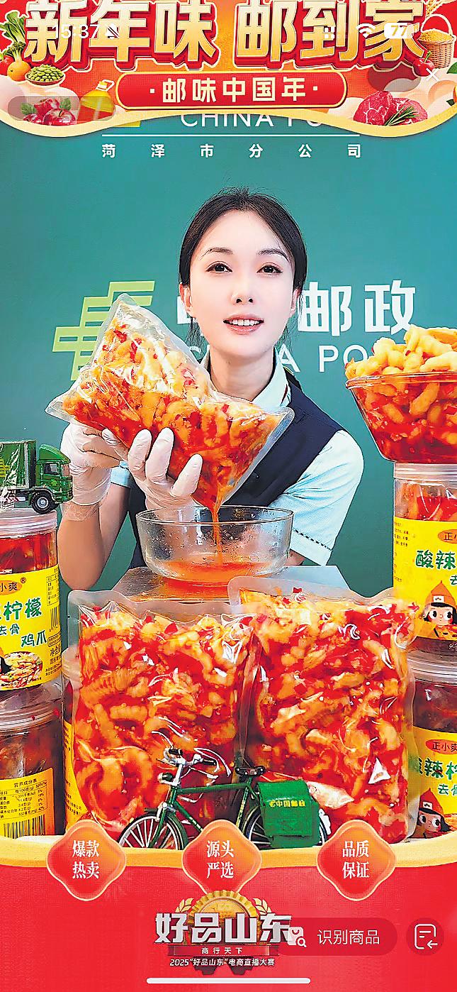 2025年11月,菏澤郵政啟動(dòng)“年貨節(jié)”專項(xiàng)策劃,建立市、縣郵政聯(lián)動(dòng)的選品機(jī)制,緊跟節(jié)日消費(fèi)趨勢(shì)與網(wǎng)民偏好,在暢銷的酸辣無(wú)骨雞爪的基礎(chǔ)上,新增佤味雞爪等品類,持續(xù)優(yōu)化產(chǎn)品組合,精準(zhǔn)對(duì)接市場(chǎng)需求。