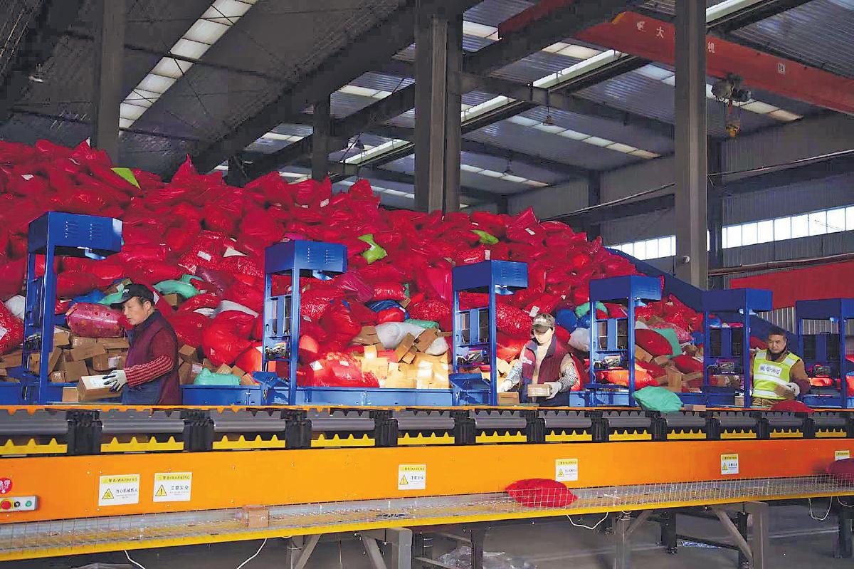 2月12日,位于江蘇省揚州市西湖鎮(zhèn)新誼路9號的揚州市郵政分公司五亭龍前置集包場地內(nèi),縱橫交錯的槽式分揀機仿佛微縮版立交樞紐,正快速、有序地傳送著五顏六色的異形件與泡件。