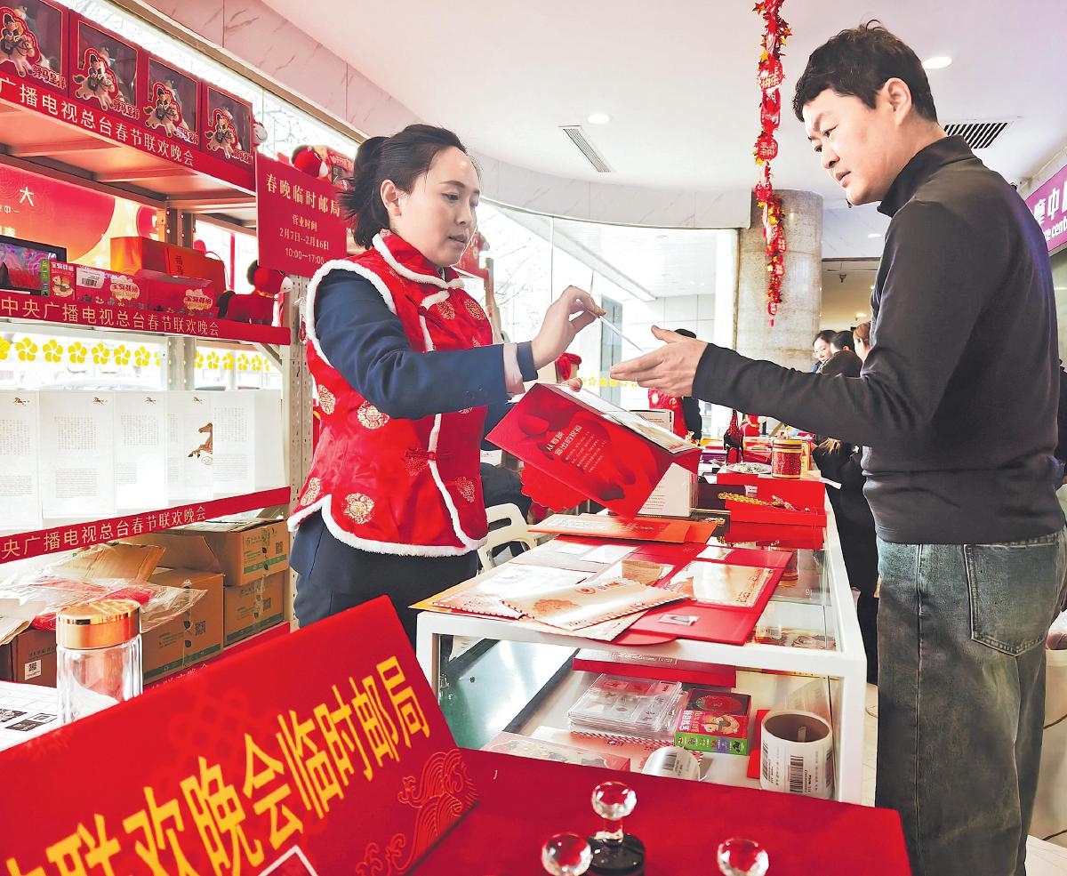 2月7日,春晚臨時(shí)郵局在北京梅地亞中心正式啟動(dòng)服務(wù)。今年的春晚臨時(shí)郵局在裝飾布置和產(chǎn)品供應(yīng)上不僅延續(xù)往年經(jīng)典,更融入2026年生肖馬元素,推出生肖主題郵票珍藏冊(cè)、總臺(tái)春晚文創(chuàng)紀(jì)念品等150余款產(chǎn)品,其中《從2026年中央廣播電視總臺(tái)春節(jié)聯(lián)歡晚會(huì)寄出的美好祝?!粪]資紀(jì)念封一亮相便成為“爆款”。一位顧客表示:“今年是我第三年來(lái)春晚臨時(shí)郵局買這套‘春晚寄福’紀(jì)念封了,從春晚現(xiàn)場(chǎng)寄出特別有紀(jì)念意義?!睋?jù)悉,春晚臨時(shí)郵局已安排好除夕當(dāng)天全員在崗,方便市民來(lái)此寄出祝福、蓋章留念。