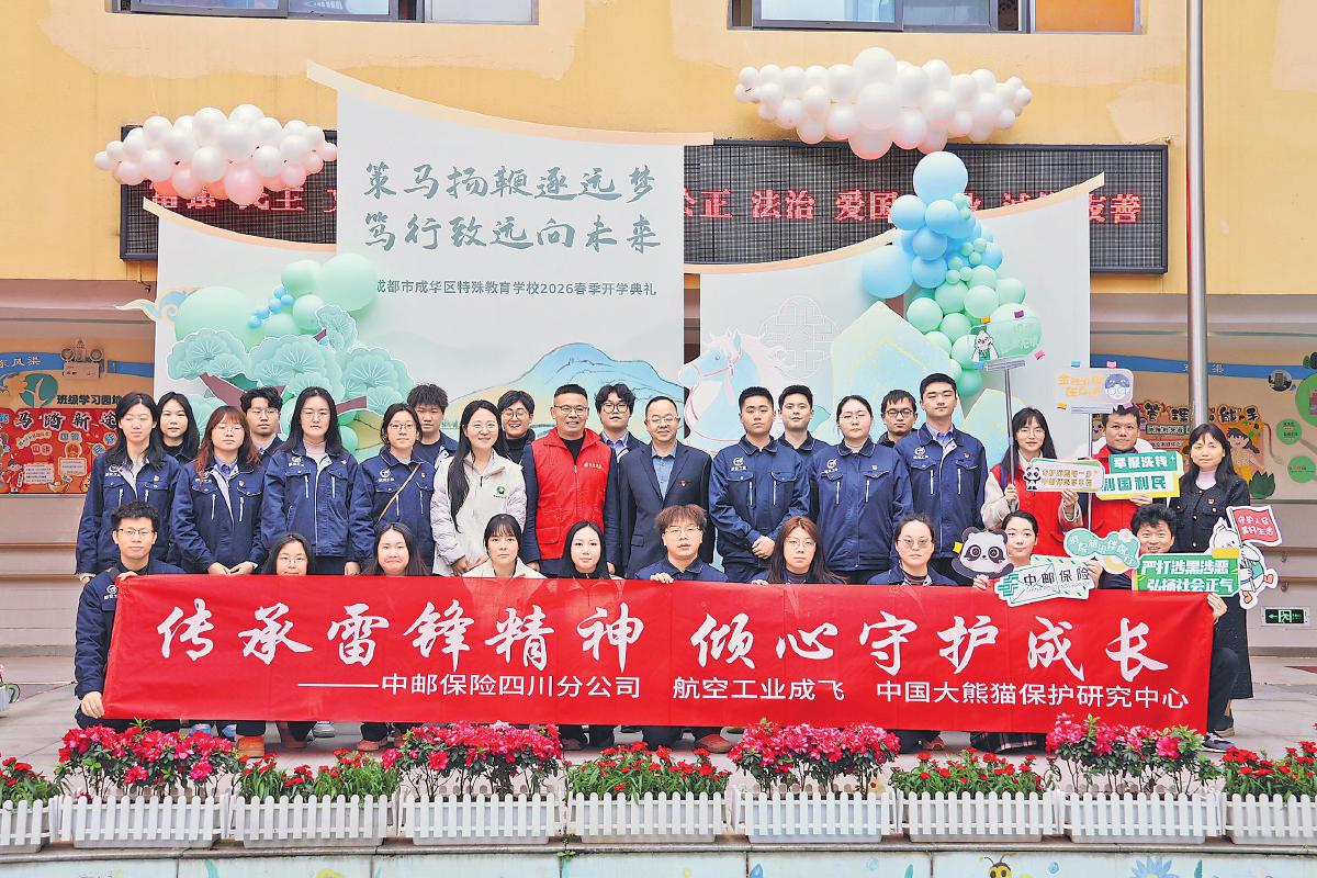 3月2日,中郵保險四川分公司聯(lián)合航空工業(yè)成飛、中國大熊貓保護研究中心,走進成華區(qū)特殊教育學(xué)校,以新學(xué)期開學(xué)典禮為契機,開展學(xué)雷鋒志愿服務(wù)活動。中郵保險青年志愿者為高年級學(xué)生帶來了一堂生動有趣的“金融安全必修課”,提醒大家守護好“錢袋子”。 □鐘瓊瑤 攝影報道